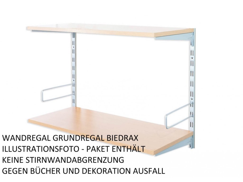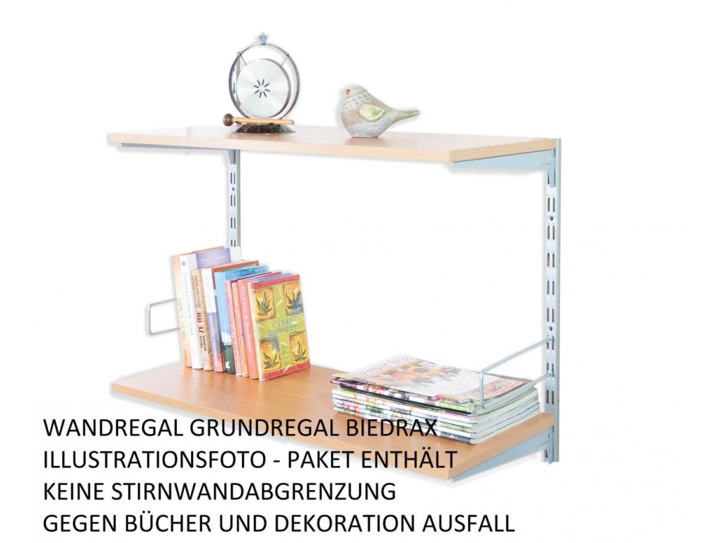 - Zawartość paczki regał podstawowy: 2 metalowe listwy ścienne, metalowe nośniki pod półkę, półka z płyty wiórowej laminowana 18 mm, śrubki dla przymocowania półek do nośników