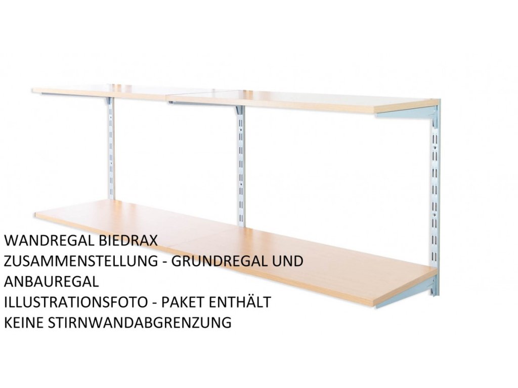 Regały ścienne dodatkowe składają się z jednego profilu (listwy na ścianę). O ile chcą mieć państwo zestaw regałów ściennych obok siebie, trzeba wybrać jeden regał podstawowy i do niego dalej regały dodatkowe.