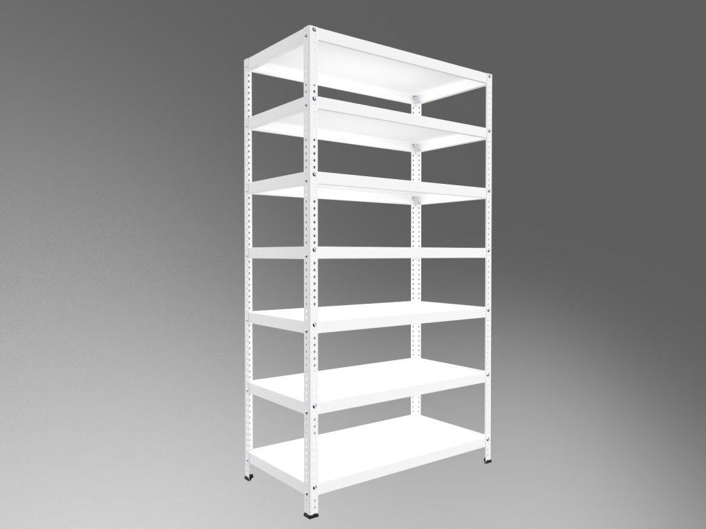 Regał skręcany Biedrax 30 x 100 x 250 cm, biały, 7 półek, nośność 150 kg na półkę