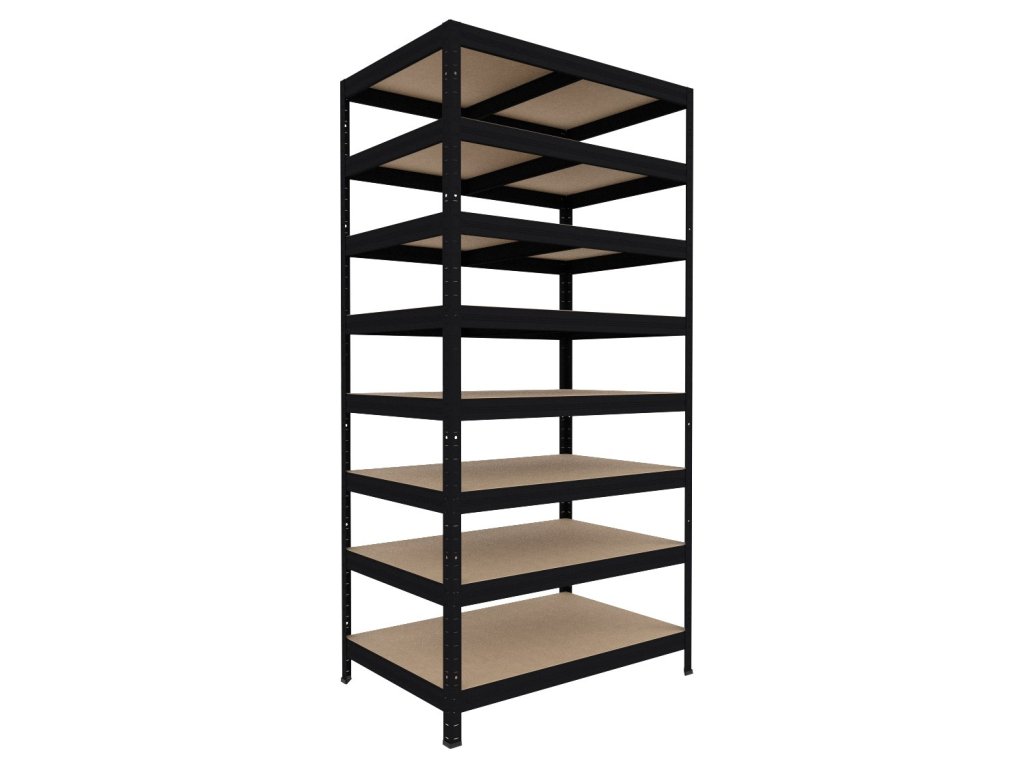 Regał do warsztatu Biedrax 35 x 75 x 210 cm, czarny, 8 półek MDF, nośność 200 kg na półkę