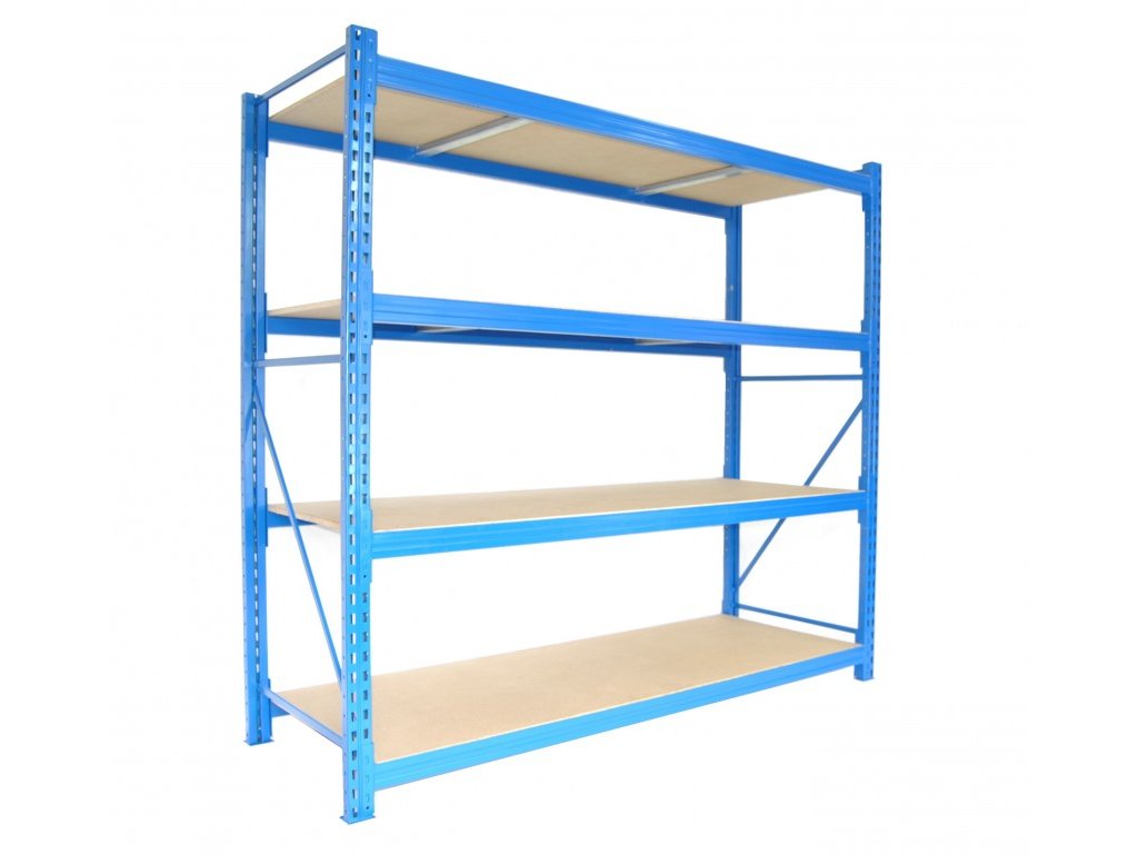 Regał Biedrax profesjonalny podstawowy 120 x 180 x 300 cm, 4 półki - 350 kg/półkę, niebieski