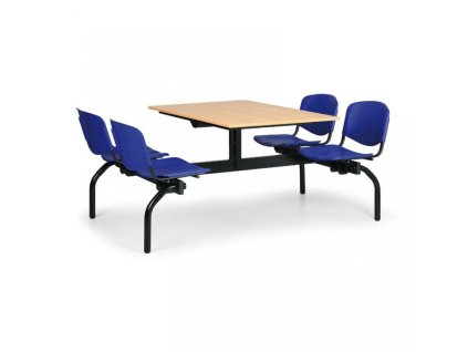 Stoły do stołówki szkolnej Biedrax JS3834b - niebieskie siedziska plastikowe, blat stołu buk