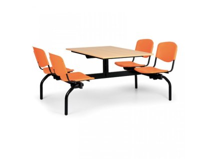 Stoły do stołówki szkolnej Biedrax JS3840b - pomarańczowe siedziska plastikowe, blat stołu buk