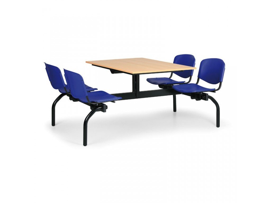 Stoły do stołówki szkolnej JS3834b - niebieskie siedziska plastikowe, blat stołu buk