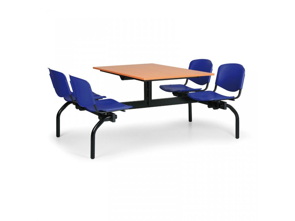 Stoły do stołówki szkolnej JS3834t - niebieskie siedziska plastikowe, blat stołu wiśnia