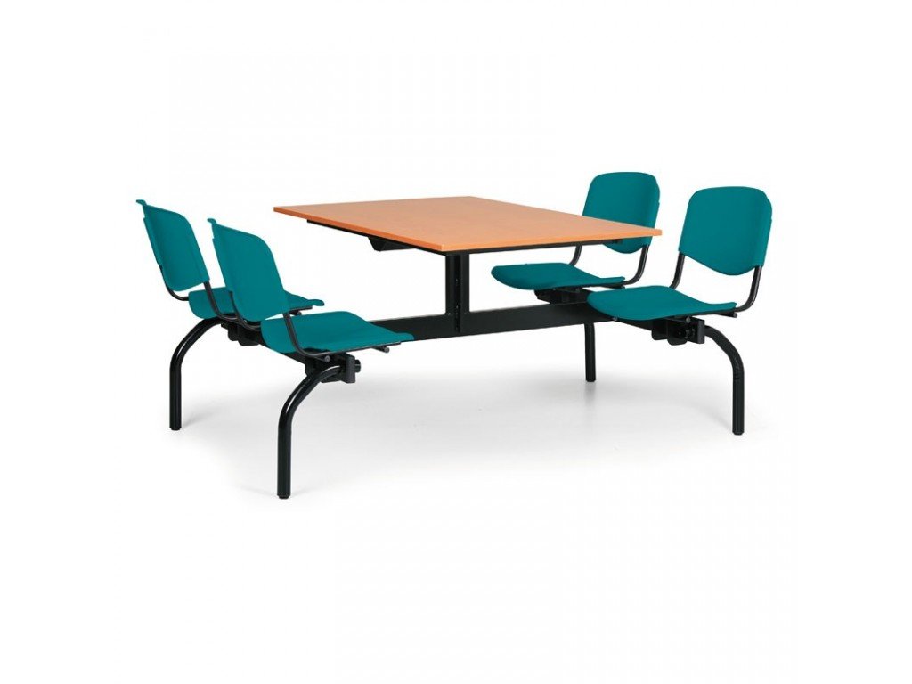 Stoły do stołówki szkolnej JS3843t - zielone plastikowe siedziska, blat stołu wiśnia