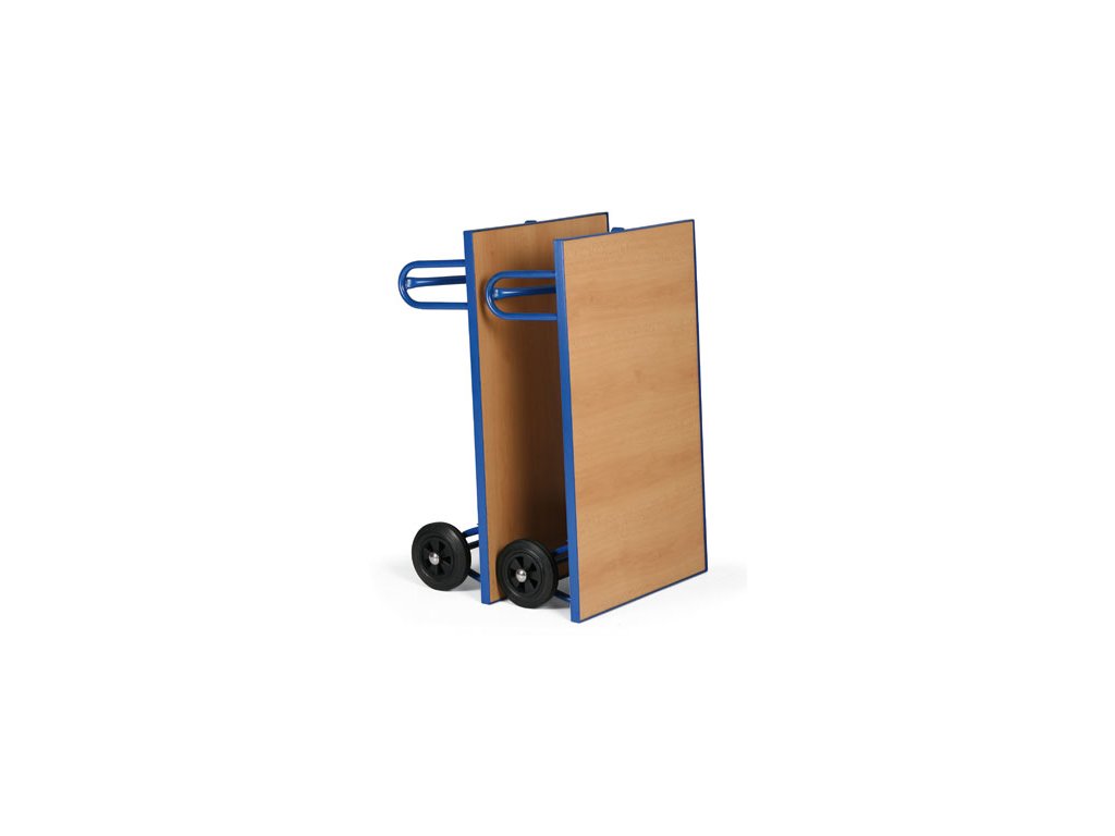 Wystarczy jeden dyszel do kilku wózków. Po zatrzymaniu się nie trzeba hamulca, stoi mocno na swoim miejscu. Można ją postawić na bocznej krawędzi i zaoszczędzić tak miejsce podczas układania pustych platform. Powierzchnia ładunkowa jest z laminowanej płyty wiórowej. Koła czarne, gumowe z łożyskami igiełkowymi.