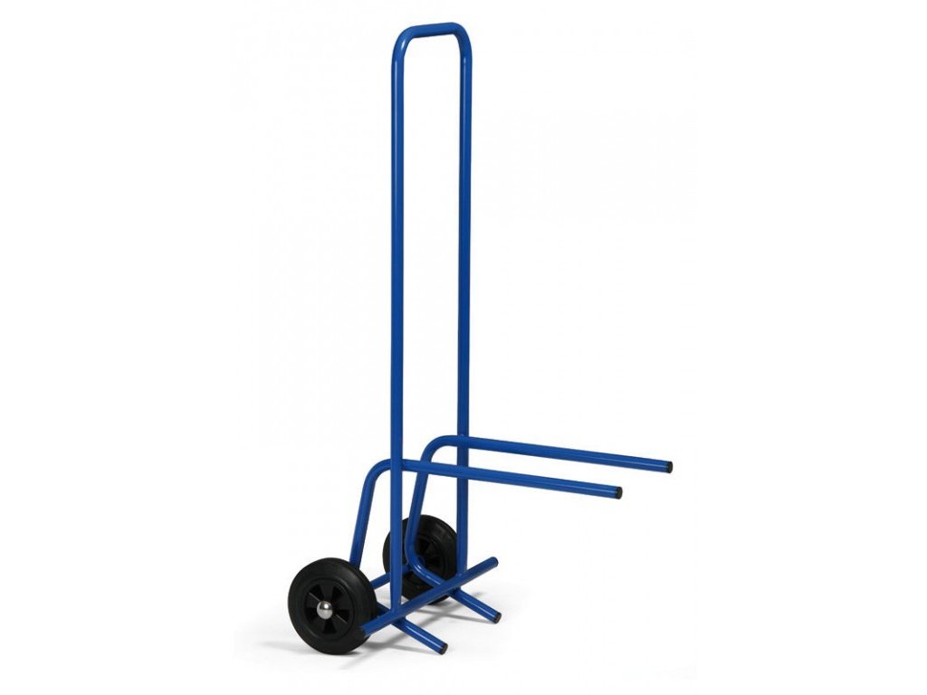 Wózek transportowy do przewożenia sztaplowalnych krzeseł konferencyjnych. Konstrukcja wykonana jest z rurek stalowych, malowane farbą proszkową RAL 5005. Długość nośników na krzesła wynosi 475 mm, odległość 275 mm.